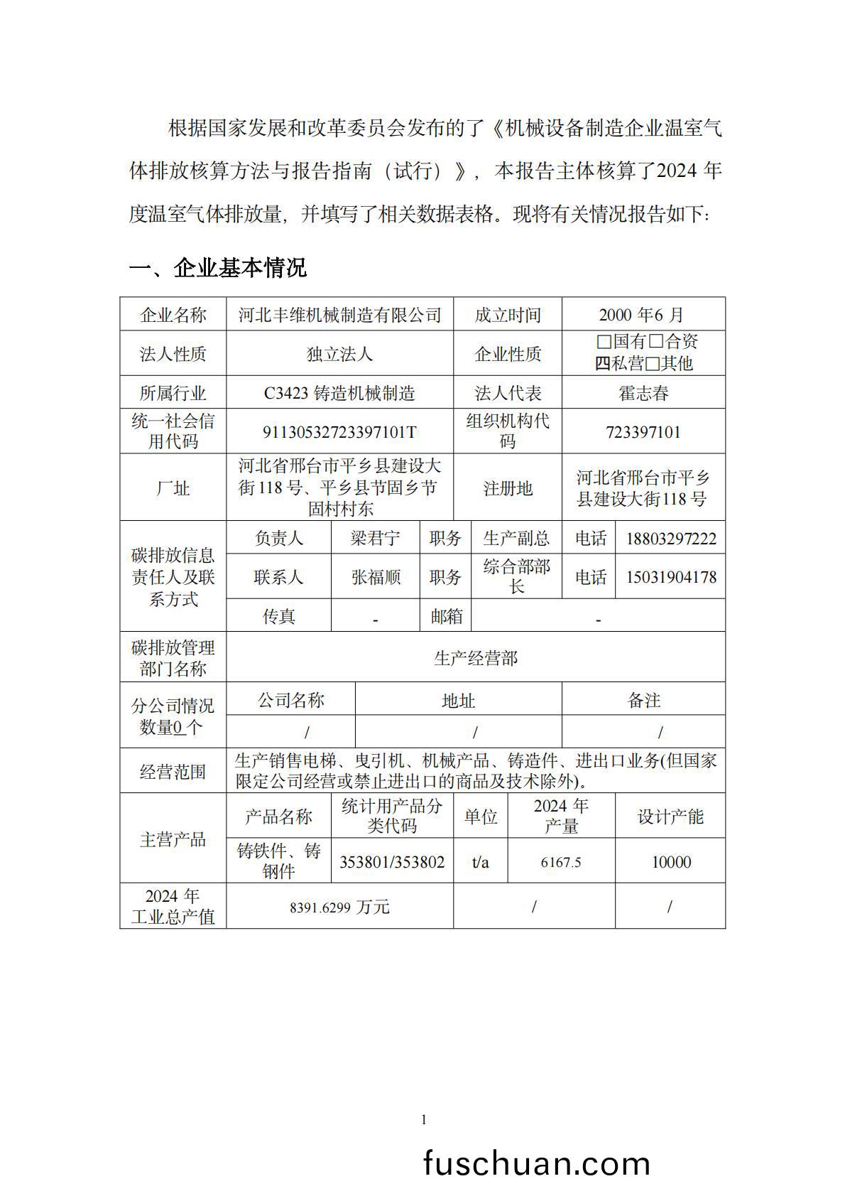 河(he)北(bei)豐維機(ji)械(xie)製造(zao)有限公(gong)司溫(wen)室氣(qi)體(ti)排放報告(gao)